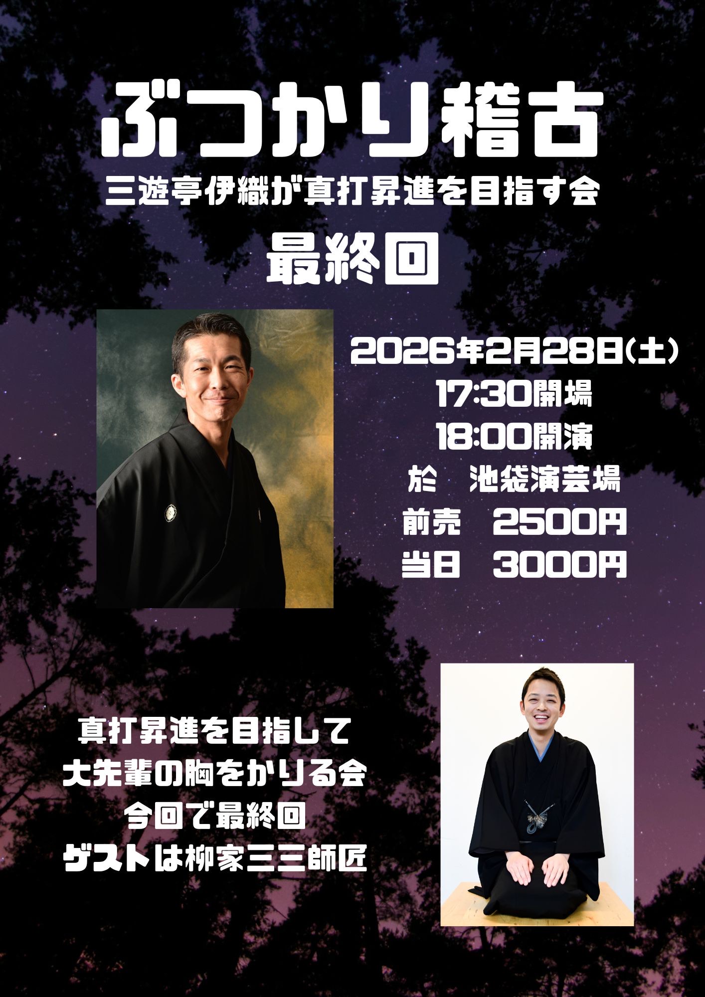 真打昇進を見据えてゲストを迎える落語会。今回のゲストは柳家三三師匠。