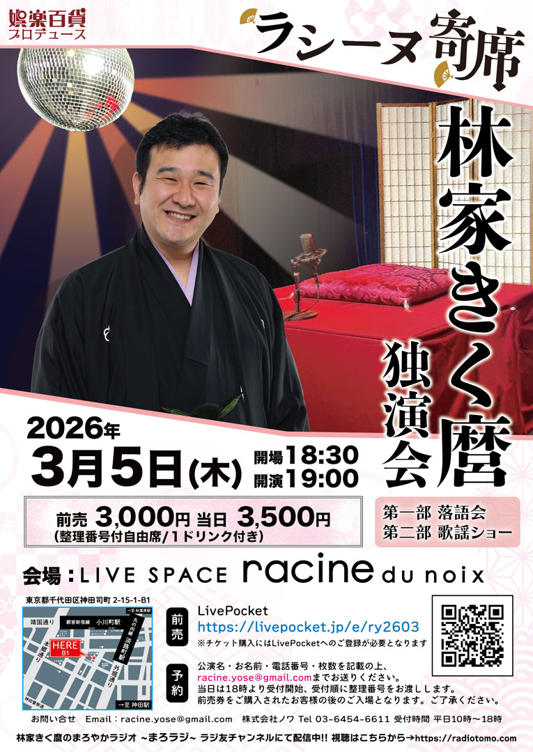 【問合せ先】株式会社ノワ・ラシーヌ寄席運営事務局 03-6454-6611(10時~18時)