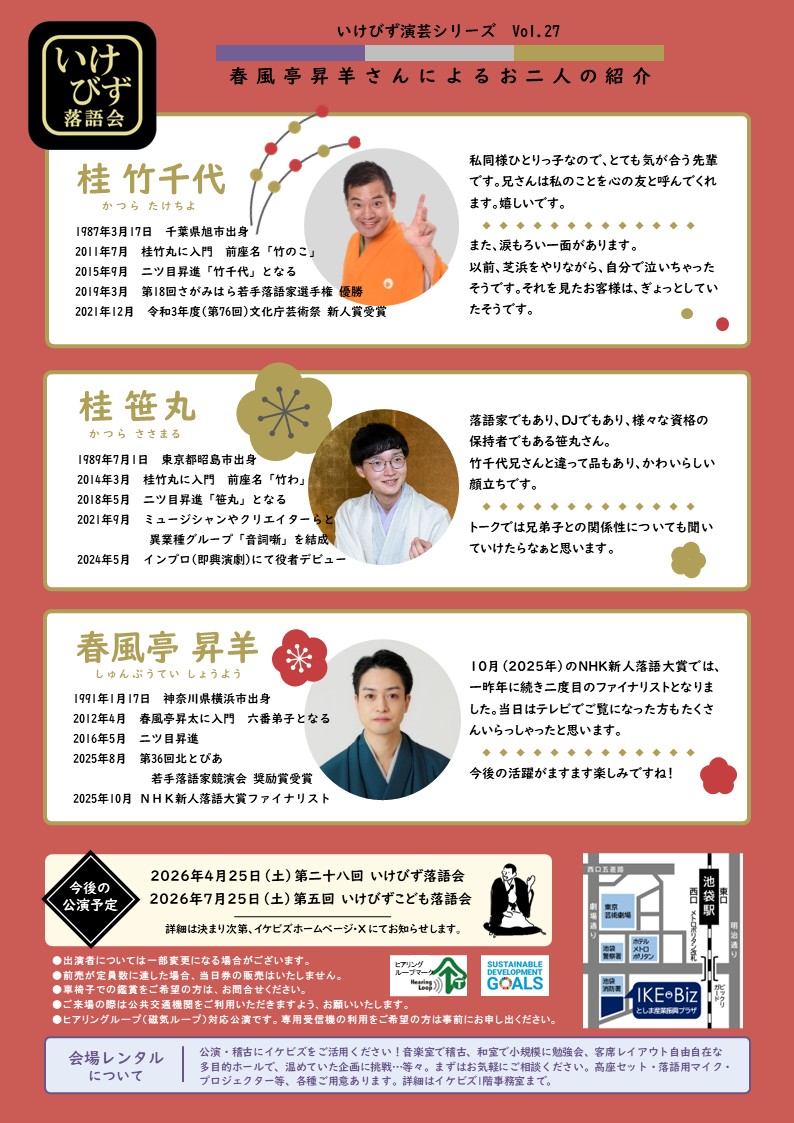 誰でも気軽に楽しめるアットホームな落語会です。いけびず落語会で新しい年をスタートしませんか?