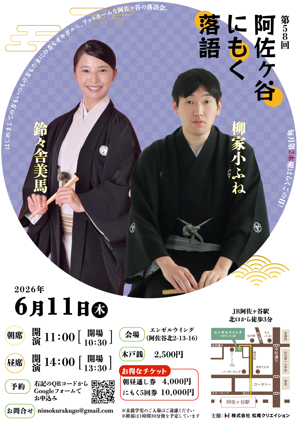 皆様に少しでも笑顔をお届けしたいとの思いから、落語会「阿佐ヶ谷にもく落語」を開催することとしました。