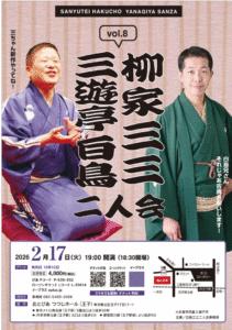 公演スケジュール 検索 日程 〜 都市 全ての都市 東京都 神奈川県 47 Miller Cres 59 Abbotsleigh St 63 Hardgrave Road 75 Shellcove Rd adatiku Flinders Lane Frankfurt Germain St, Las Vegas Mangilao Orlando Tumon さいたま市 つくば市 一宮市 七日町 三弥町 三重県 世田谷区 中区 中央区 中央区千日前2-3-9 中野区 中頭郡 二本松市 京京都 京都府 佐倉市 佐賀県 入間市 兵庫県 前橋 北区 北海道 千代田区 千葉市 千葉県 南7条西2丁目 只見町 台東区 名古屋市 名護市 国分寺市 埼玉県 埼玉県1 大分県 大字富沢 大町 大阪市 大阪府 天童市 守山区 守山市 安達郡 宮城県 宮崎県 富士吉田市 富山県 小川町19-5 小野川町 尼崎市 山口県 山形県 山梨県 岐阜市 岐阜県 岡山県 岩手県 島根県 帯屋町2-5-23 広島県 徳島県 愛媛県 愛知県 我孫子市 所沢市 新宿 新宿区 新居浜市 新潟県 日本 旭川市 春日井市 最上郡 杉並区 東京 東京都 栃木 栃木市 栃木県 横浜市 江東区 沖縄県 津市 浜松市 浜松市中区 浦安市 渋谷区 港区 滋賀県 熊本県 石川県 磯子区 神奈川県 福井市 福井県 福岡県 福島県 秋田県 米沢市 練馬区 群馬県 羽所町 習志野市 茅ヶ崎市 茨城県 茨木県 茨茨城 草加市 荒川区 藤沢市 虻田郡 西区 豊島区 豊橋市 越谷市 那覇市 郡山市 鎌倉市 鎌田本町 長崎県 長野県 青森県 静岡市 静岡県 静静岡 須賀川市 飯能市 駿河区 高崎市 高知県 鴻巣市 鹿児島 鹿児島県 オプション隠す オプション表示 2月 2026年 日時 公演概要 2026/02/17 19:00 三遊亭白鳥 柳家三三 二人会 VOL.8 【場所】北とぴあ つつじホール(東京都), 東京都 三遊亭白鳥 / 柳家三三 2026/02/28 14:00 さざなみ亭落語会 三遊亭わん丈&みんなで創る落語会 其の八 【場所】逗子文化プラザさざなみホール, 神奈川県 三遊亭わん丈 ほか 4月 2026年 日時 公演概要 2026/04/07 11:00 三遊亭志う歌×春風亭柳枝ふたり会 僕らの、落語RISING 【場所】千駄木能舞台, 東京都 三遊亭志う歌 / 春風亭柳枝 2026/04/07 14:00 三遊亭志う歌×春風亭柳枝ふたり会 僕らの、落語RISING 【場所】千駄木能舞台, 東京都 三遊亭志う歌 / 春風亭柳枝 2026/04/12 13:00 第二回 能登半島地震 チャリティー落語会 【場所】慈眼山 円通寺, 埼玉県 蝶花楼桃花 < 1 2 3 4 5 6
